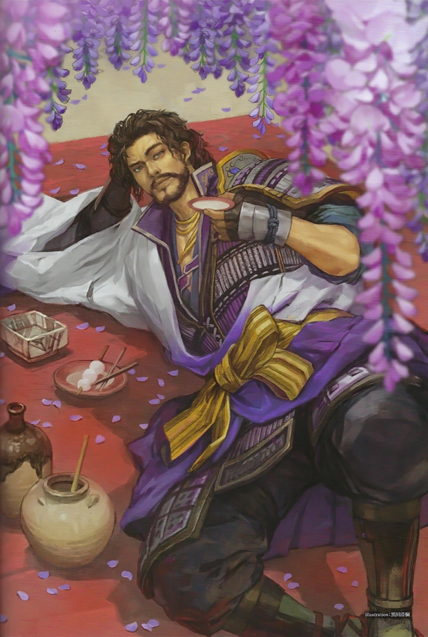 In the Samurai Warriors series, he's symbolized by the words "fierce" (猛) and "divide" (割).