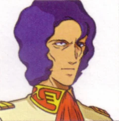 M'Quve (マ・クベ) is one of Kycilia Zabi's subordinates who leads the land forces on Earth. In charge of mining operations for the Zeon forces, he directs his subordinates to follow his every command. Through his meticulous planning and strategies, he attempts several attacks on White Base and their crew. His attempts are foiled by Gundam each time, flustered when he loses Ramba Ral and The Black Tri-Stars before the Federation reaches the Zeon base at Odessa. Determined to use any method necessary for victory, he launches a nuclear missile and leaves Odessa. In the process of his grand escape from the area, he deserts a large portion of his subordinates. Seen again in space, he is the one who retrieves the escape pod containing Dozle's wife and daughter after Solomon.