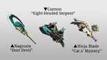 A series of new weapons for select weapon types, with each set possessing three new weapons. This set includes the Naginata, Cannon, and Ninja Blade.